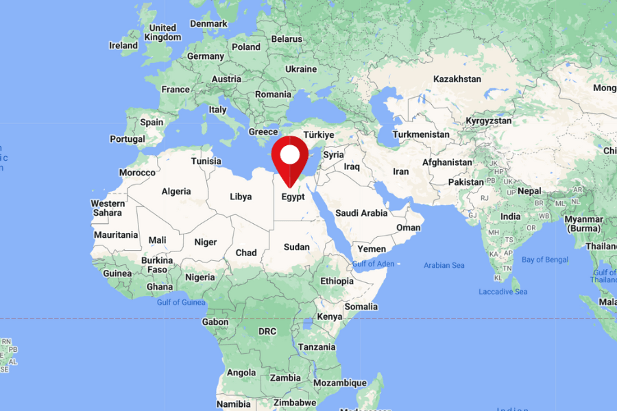 Egypt is located in Africa in the northeastern corner of the continent of about one million square kilometres, bordered to the west by Libya, to the south by Sudan, and to the east by Palestine. It is magically bordered by one of the top ten largest seas in the world, The Mediterranean Sea, linked to the Atlantic Ocean, and one of the most saline water seas in the world, the Red Sea, which is connected to the Indian Ocean.