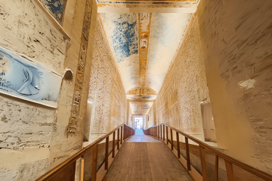 Continue to the world-famous Valley of the Kings, the burial ground of Egypt’s New Kingdom rulers. Here you’ll step inside royal tombs, including those of Ramses II and the boy king Tutankhamun, where vivid hieroglyphs and colorful paintings reveal the mysteries of ancient funerary beliefs.