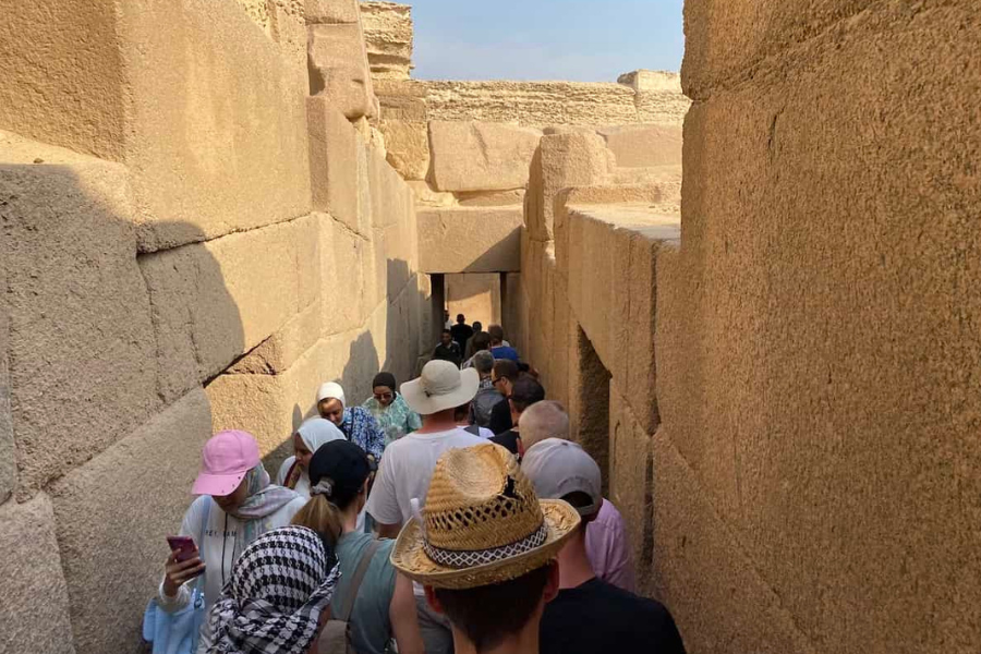 Your Cairo day tour continues with a visit to the fascinating Valley Temple of Khafre, located close to the Nile and directly beside the iconic Great Sphinx. Built during the same era as Khafre’s Pyramid, this ancient temple served as a key site for the mummification and purification rituals of Egypt’s royal family. Archaeologists have uncovered statues, inscriptions, and ceremonial features that reveal how several noble figures were prepared here for their journey to the afterlife.