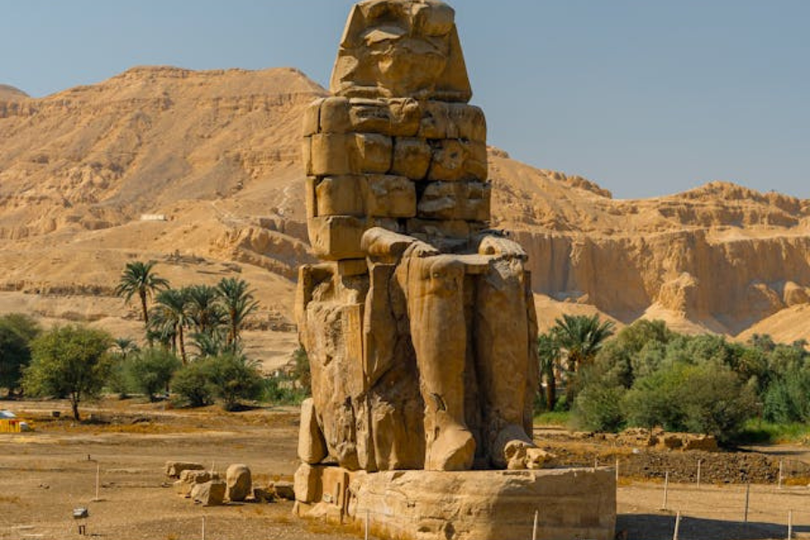 Conclude your tour at the iconic Colossi of Memnon — two massive seated statues of Amenhotep III, standing 18 meters tall. Once guardians of a grand mortuary temple long vanished, these statues have fascinated travelers for centuries, even “singing” at dawn in ancient times due to cracks in the stone.