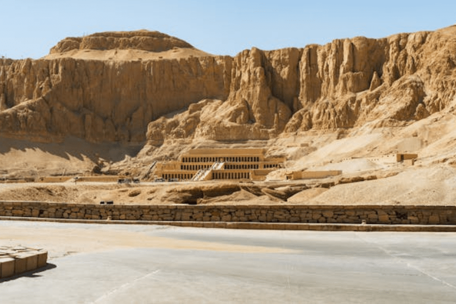 Rising in elegant terraces from the base of the cliffs at Deir el-Bahari, the mortuary temple of Queen Hatshepsut is both a political statement and an architectural marvel. Built by the female pharaoh’s trusted architect Senenmut, the temple blends harmoniously with its surroundings and celebrates Hatshepsut’s divine birth, trade expeditions, and reign of prosperity.