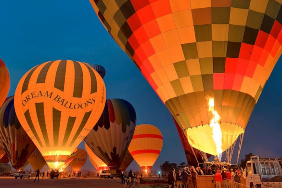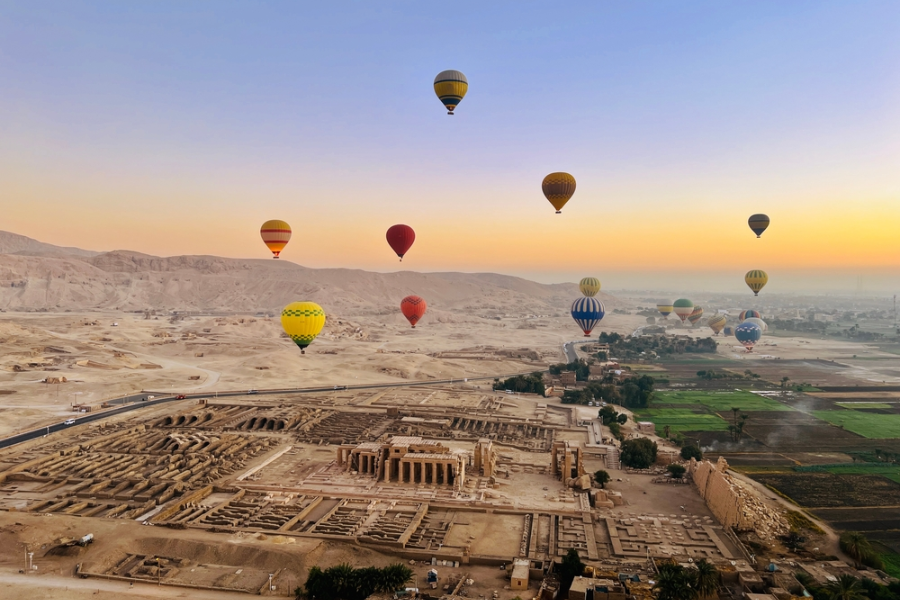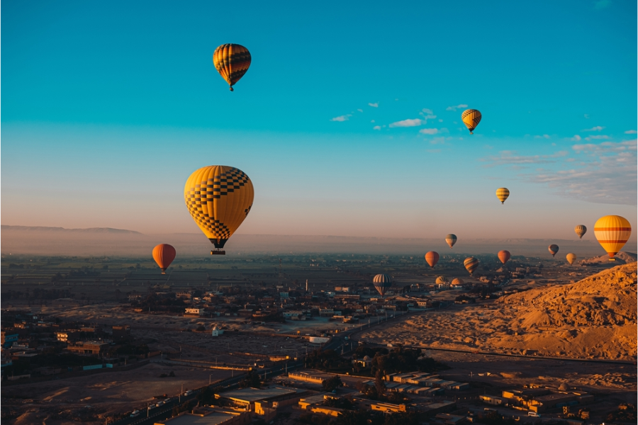 - ~45 minutes Hot Air Balloon Ride in Luxor at sunrise.