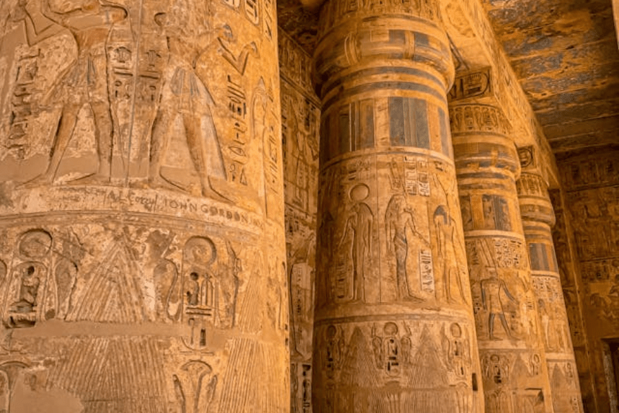 In ancient Egypt, Medinet Habu was known as Djanet, believed to be the place where Amun first appeared. Queen Hatshepsut and King Tuthmosis III built a temple to Amun here, and later Ramses III constructed his grand mortuary temple on the same sacred site. Its walls and reliefs remain among the finest in Thebes.