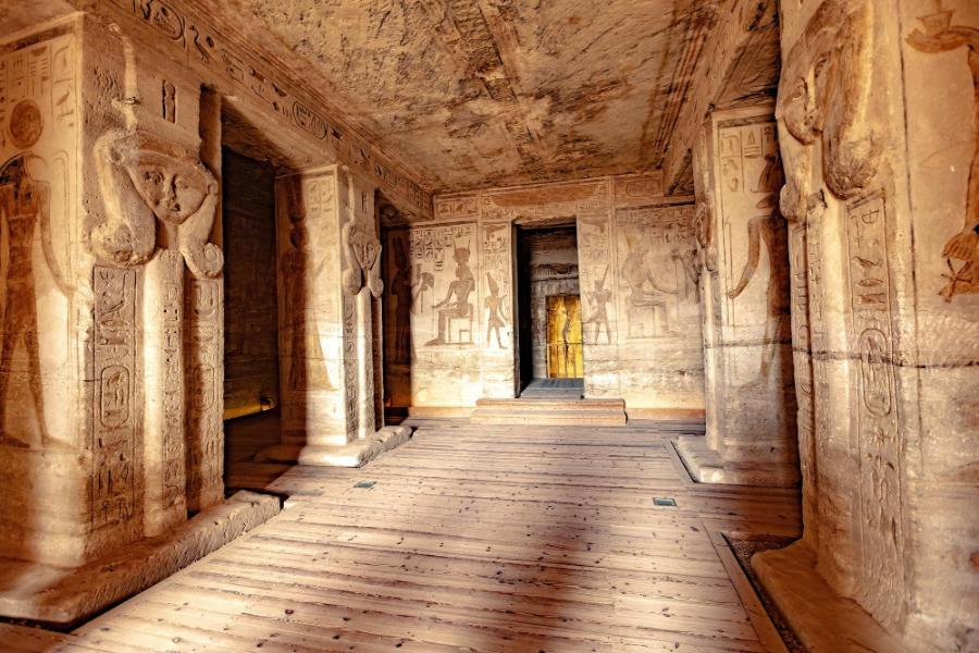 Carved into the golden cliffs of Nubia, the world-famous Abu Simbel Temples stand as an eternal symbol of love and power. Guarded by four colossal seated statues of Ramses II, the main temple was aligned so that the sun’s rays illuminate its inner sanctuary twice each year — on the pharaoh’s birthday and coronation day. This extraordinary feat of ancient engineering was later rescued stone by stone in the 1960s to protect it from the waters of Lake Nasser, turning it into both a pharaonic masterpiece and a modern miracle of preservation.