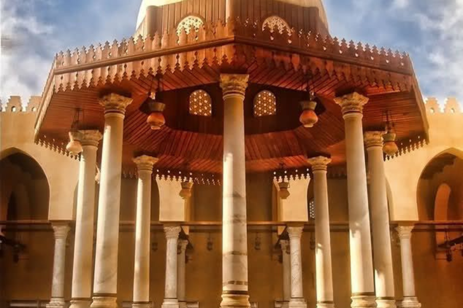 Explore Egypt’s first mosque, established in 641 AD by General Amr Ibn Al-Aas. Legend says the mosque was built on the spot where a pigeon laid her eggs above his tent. The mosque has been reconstructed several times and remains a spiritual beacon in Old Cairo.