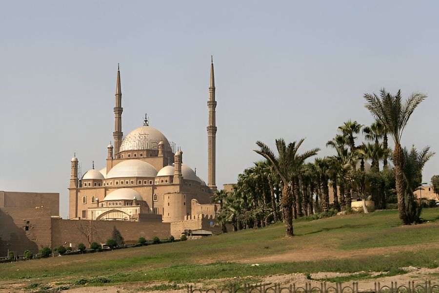 Dirigimos a la Ciudadela de Saladino. Es una antigua fortaleza en Egipto que fue construida hace mucho tiempo por un líder llamado Saladino, con la Mezquita de Muhammad Ali en su interior, para proteger a El Cairo contra posibles invasiones, y fue el hogar de la administración egipcia durante el período ayubí y otomano en la historia de Egipto.