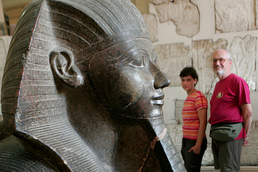 Luego disfrutamos del almuerzo en un restaurante antes de visitar el Museo Egipcio. El museo es único en su género por su presentación de toda la historia de la civilización egipcia, especialmente de las antigüedades de los períodos faraónico y grecorromano. En la planta baja se encuentran numerosos objetos grandes y pesados. En el apogeo de su colección, el museo almacenó más de 100.000 piezas.