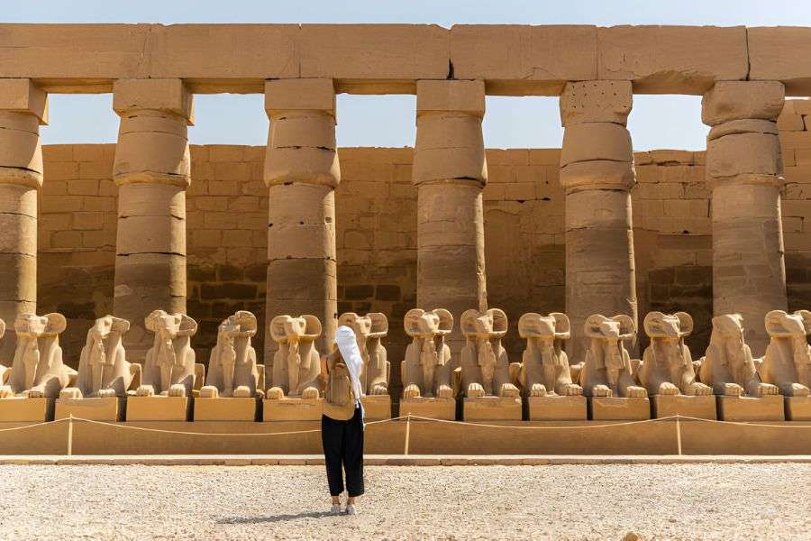 Desayunará en el hotel en Luxor y luego salimos para disfrutar de nuestro tercer día del viaje de 5 días en Egipto con las visitas de las atracciones impresionantes, empezamos con el Templo de Karnak, que era el lugar de culto más importante de Tebas (actual Luxor). Es el templo en el que se santificó al gran Dios Amón, Dios de Tebas, por lo que el templo alcanzó una gran riqueza y sus sacerdotes se convirtieron en un importante poder político.