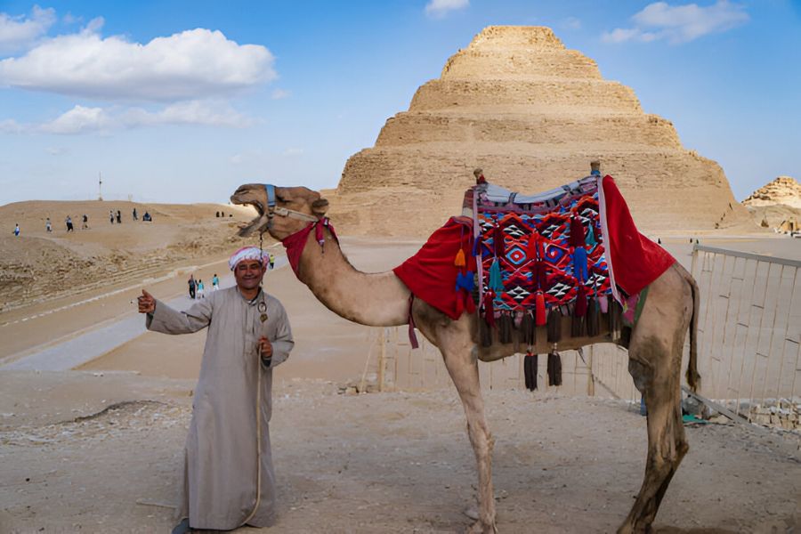Disfrutamos del almuerzo en un restaurante y luego vamos para continuar nuestro día con la visita de la Pirámide Escalonada de Saqqara. La pirámide fue construida alrededor del año 2600 a. C., durante la Tercera Dinastía del Antiguo Egipto, y se cree que fue encargada por el rey Djoser.