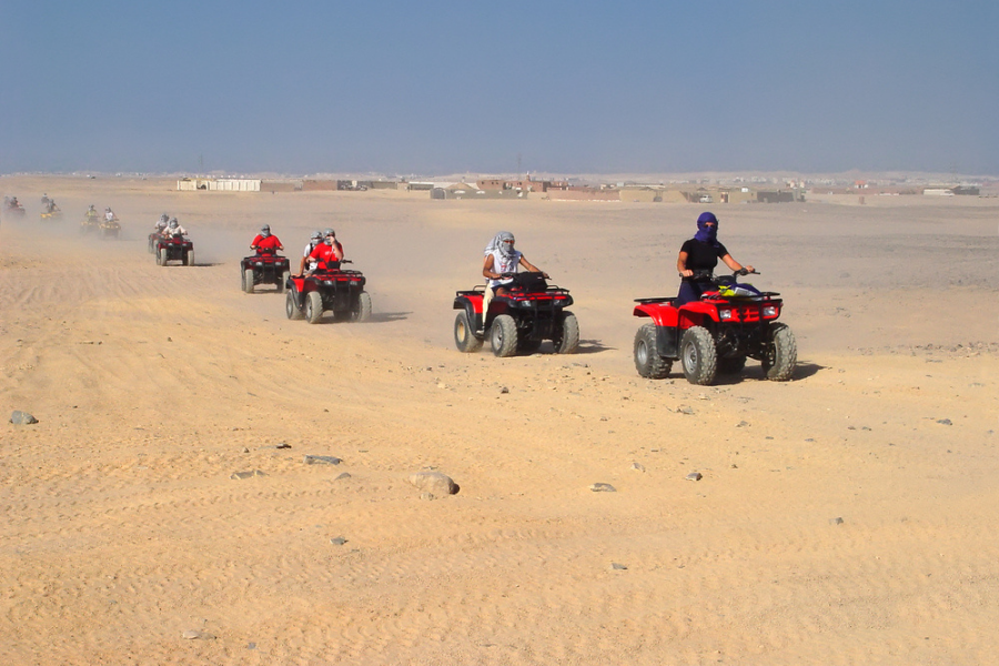 Ride a powerful quad bike across the golden sands of Hurghada's desert with your private guide. Visit an authentic Bedouin village to learn about the local traditions and culture, and experience camel riding under the wide desert sky. You will also enjoy discovering different sand types and breathtaking views during a magical sunset. A delicious lunch will be served before returning to your hotel for the night.