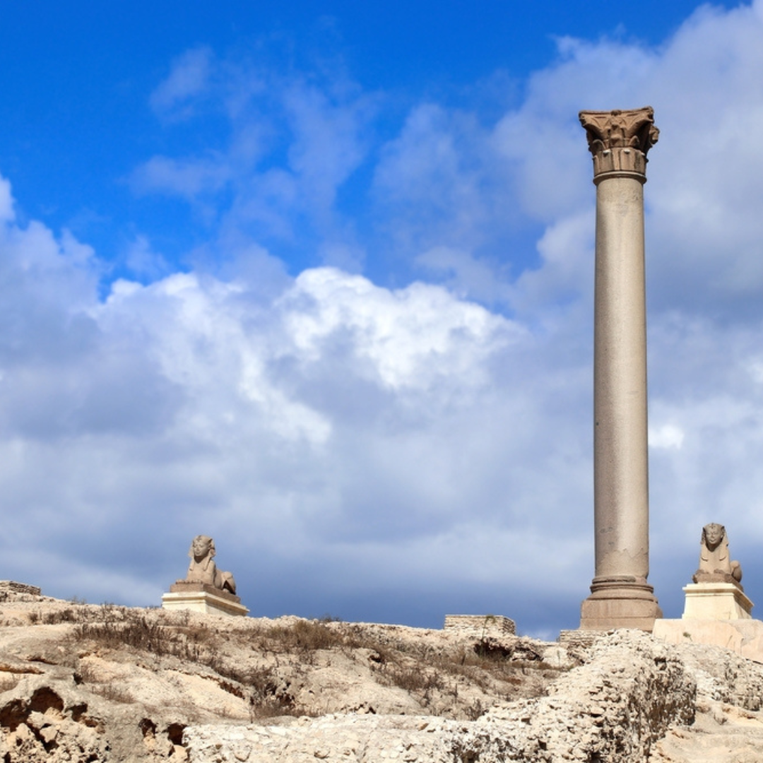 Standing tall at nearly 27 meters, Pompey’s Pillar is one of the largest monolithic columns ever built outside Rome. Carved from red Aswan granite, the column was erected in honor of Emperor Diocletian and remains a proud relic of Roman architecture in Egypt.