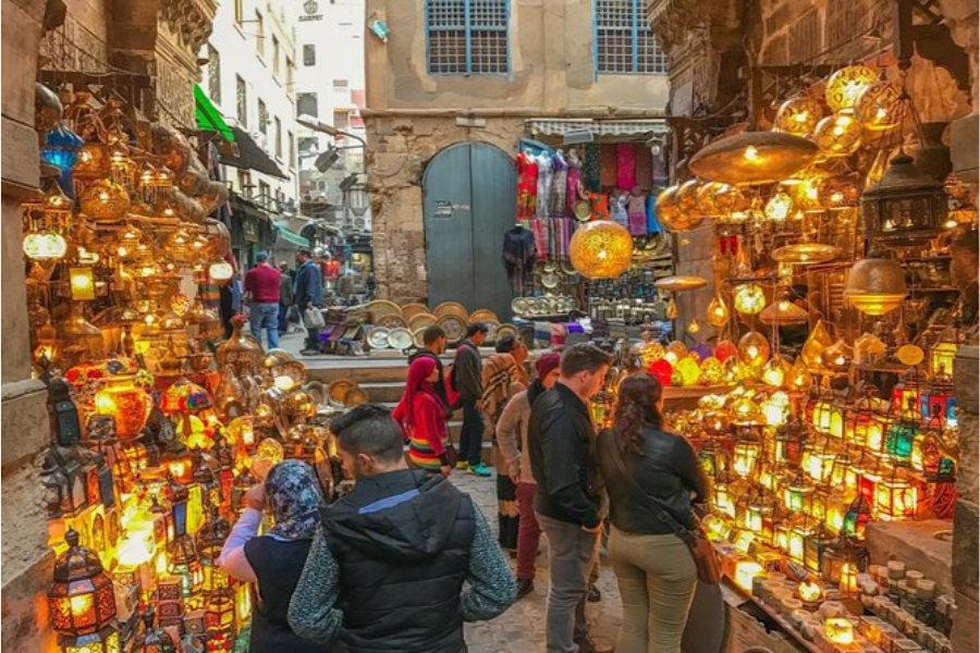 Later, head to Khan El Khalili, Cairo’s most famous bazaar. The lively atmosphere is filled with shopkeepers calling out, the aroma of coffee, and colorful fabrics lining the narrow streets. It’s the perfect place to buy souvenirs or enjoy a cup of tea while watching daily life unfold.
