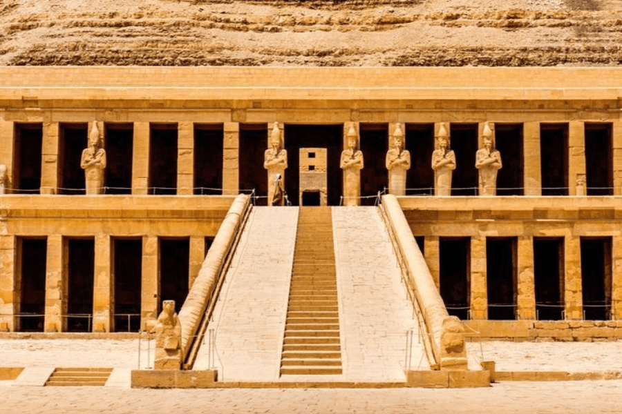 Visit the awe-inspiring Temple of Hatshepsut at Deir el-Bahari, a striking mortuary temple built into limestone cliffs to honor Egypt’s most powerful female pharaoh.
